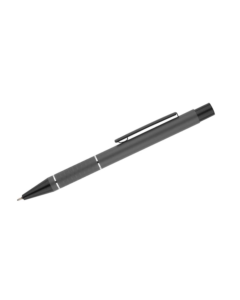 SATO kemični svinčnik je izdelan je iz lahkega aluminija, črna prevleka pa mu daje eleganco in prestiž, zaradi česar je odličen kot promocijski izdelek. Ohišje krasita dva srebrna obročka, dodatno pa ga poudarjajo črte z rahlo grobo teksturo, ki poskrbijo za prijeten občutek ob dotiku. Polnilo s polgel črnilom omogoča izjemno gladko in tekoče pisanje, debelina pisanja 0,7 mm pa zagotavlja natančne zapiske, poudarke in črke.