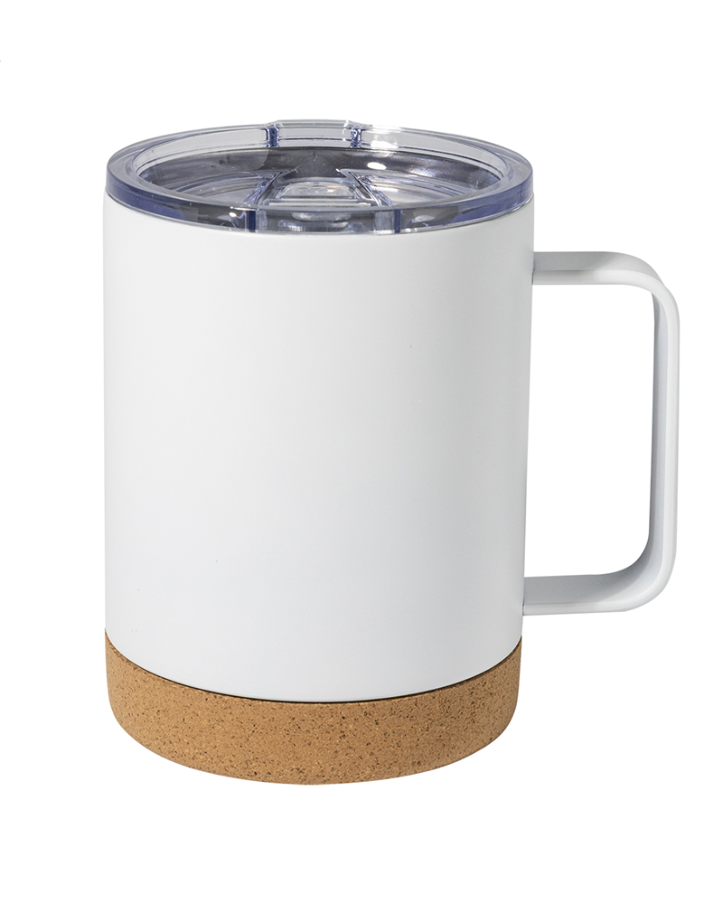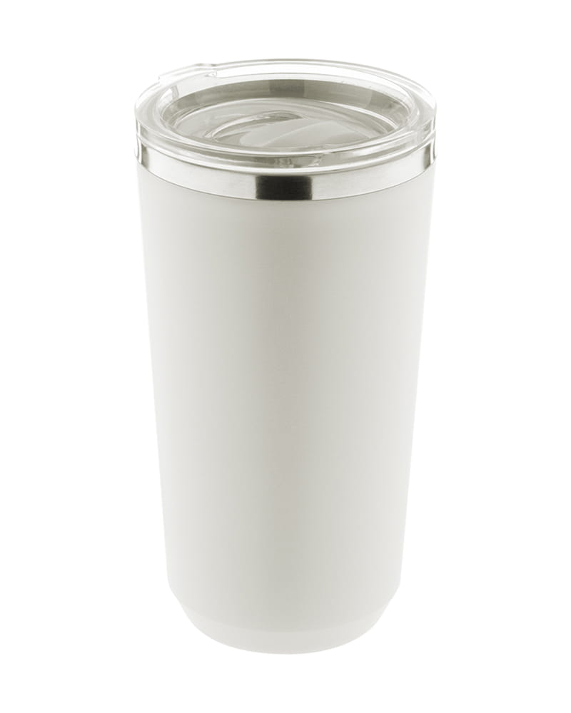 Dvoslojna termo skodelica iz recikliranega nerjavečega jekla s plastičnim pokrovčkom za pitje.