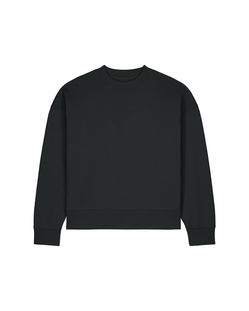 Unisex pulover boxy kroja, izdelan iz mešanice recikliranega in organskega bombaža. Ima 1x1 rebrast ovratnik, manšete in spodnji rob, všite rokave ter ribjo kost (herringbone) trak na notranji strani ovratnika. Na hrbtni strani je dodatno ojačan s polkrožnim všitkom iz enake tkanine. Dvojni šivi na ramenih, rokavnih izrezih, manšetah in spodnjem robu zagotavljajo večjo obstojnost in čist, strukturiran videz. Sestava: 50 % recikliran bombaž, 50 % organski bombaž (brushed, fabric washed)