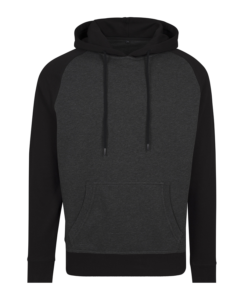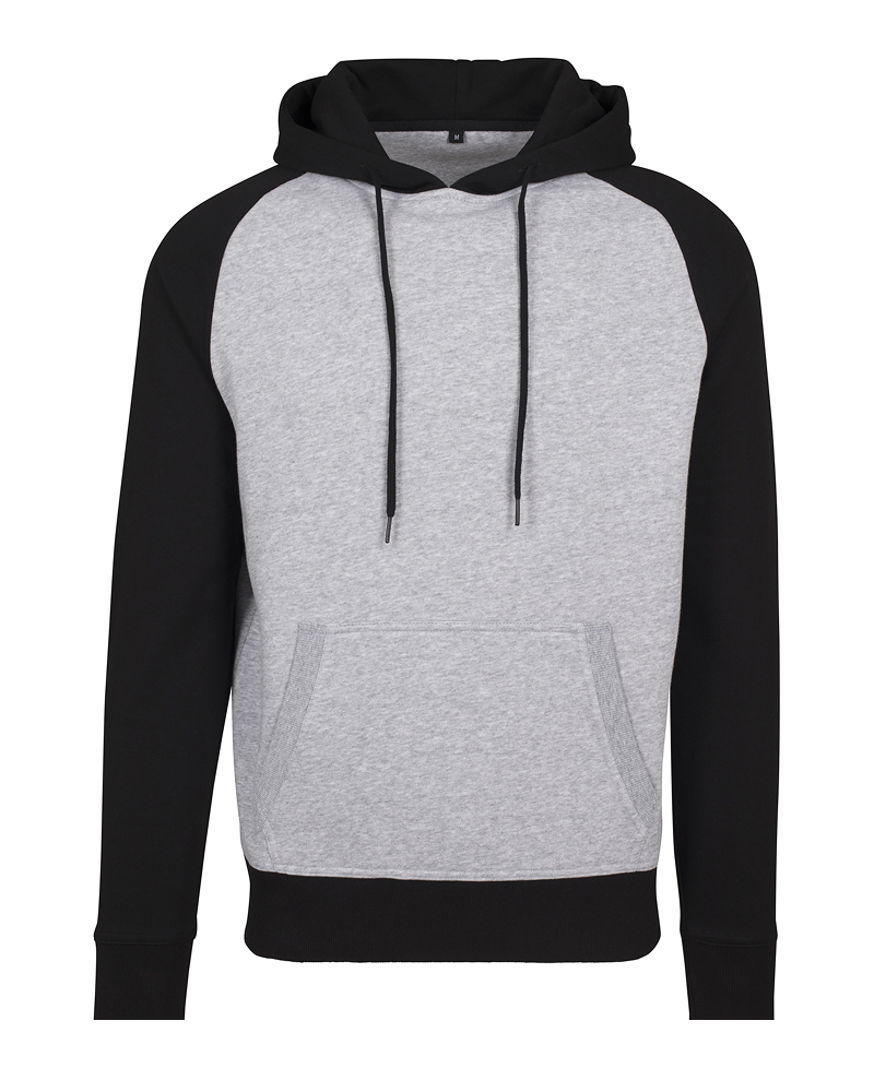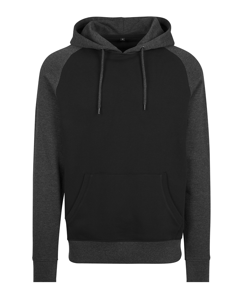 Raglan pulover s kapuco ima športen raglan kroj in rahlo kontrasten dvobarvni videz. Široki rebrasti patenti in kapuca z usklajeno vrvico dopolnjujejo njegov dizajn. Izdelan je iz 65 % bombaž, 35 % poliester in flisa s težo 250 g/m², kar zagotavlja udobje in odlično prilagodljivost za različne dodelave.