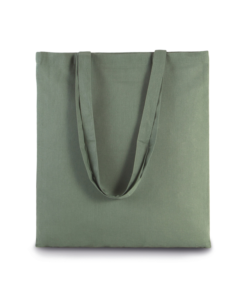 Bombažna shopper vrečka v različnih barvah z dolgimi ročaji (70 cm), pralna na 40 °C. 100 % bombaž, 130 g/m². Idealna za vsakdan in trajnostno uporabo.