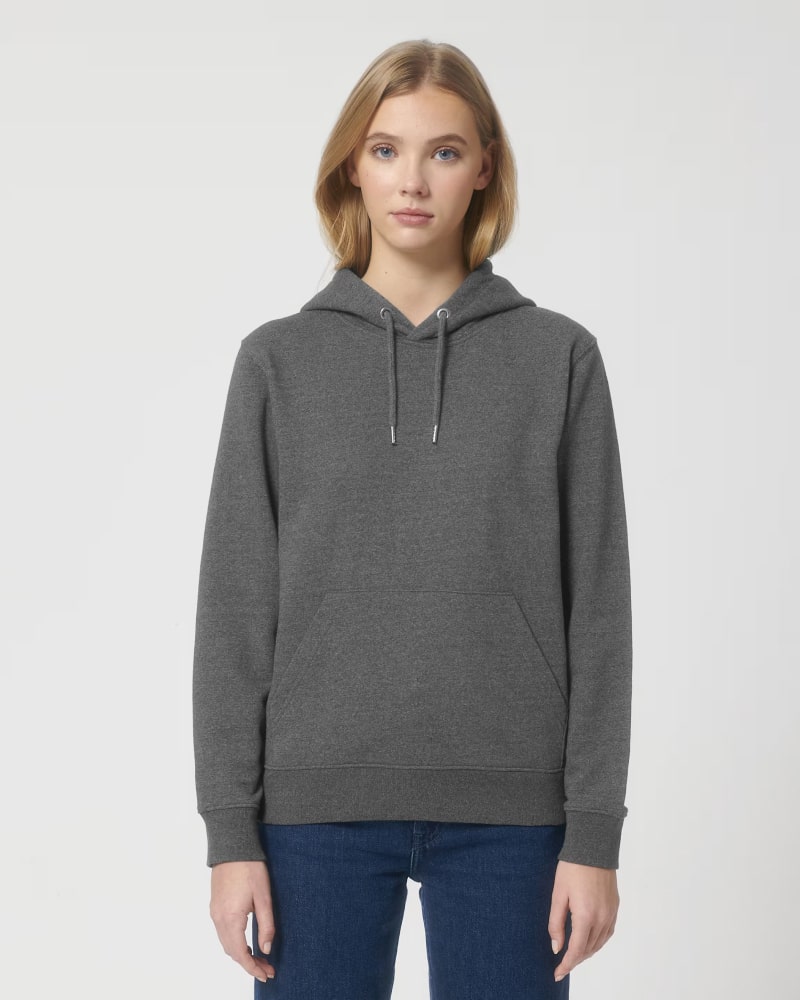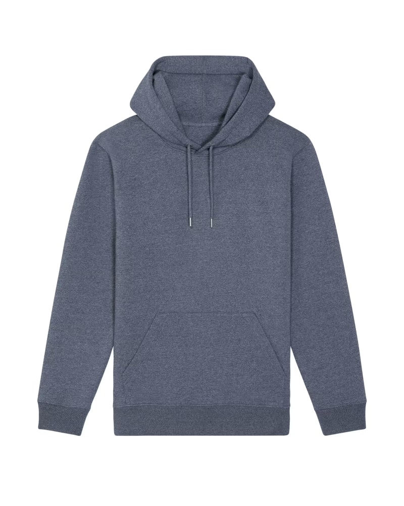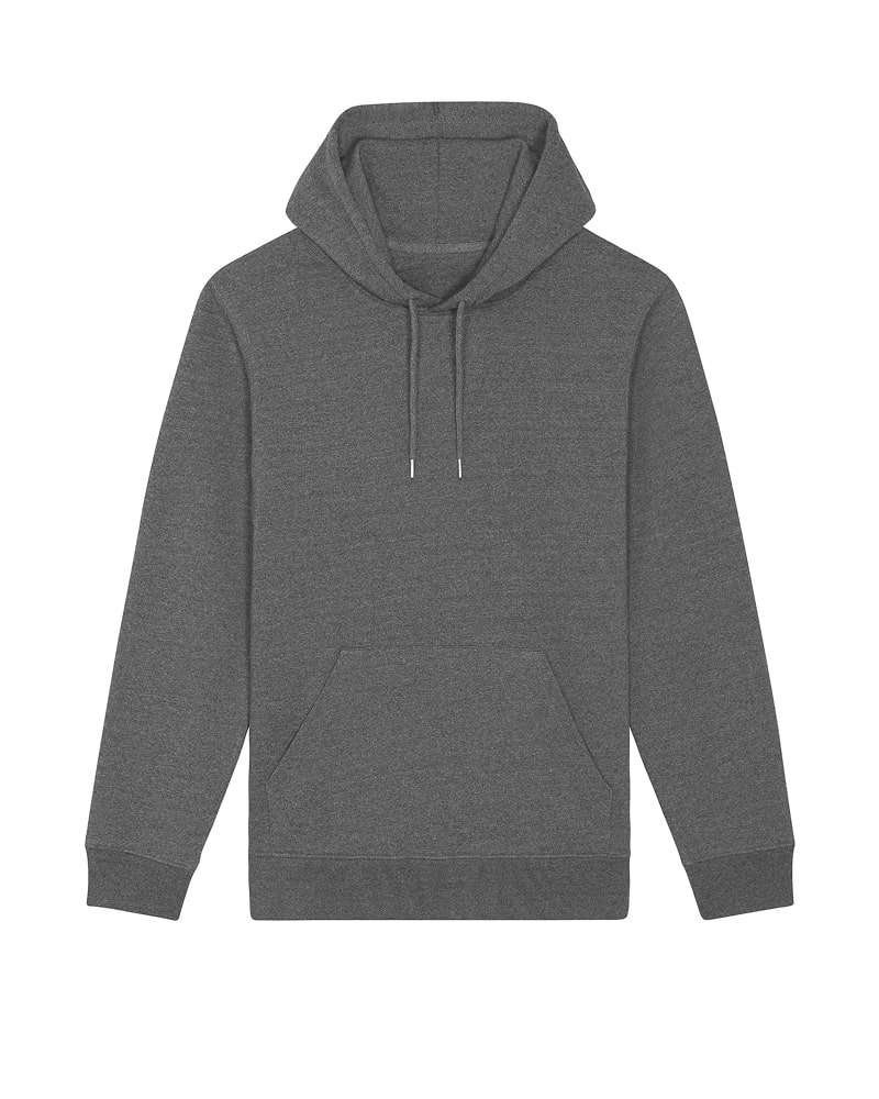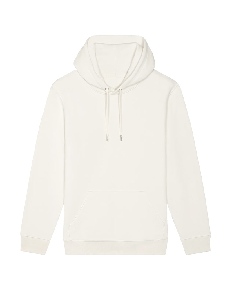 Unisex pulover s kapuco s srednje prilegajočim krojem, izdelan iz težke, 350 GSM tkanine, ki nudi toplino in udobje. Izdelan je iz kombinacije 43 % organskega bombaža, 42 % recikliranega bombaža in 15 % recikliranega poliestra, ustvarjenega iz notranjih ostankov pri rezanju (in-house cutting waste), predhodno opran za svetlo zglajen, mehak finiš. Površina tkanine ima rahlo teksturo zaradi recikliranih vlaken, kar dodaja naraven in robusten videz. Opremljen je s klasičnimi všitimi rokavi, dvojno slojno kapuco iz iste tkanine, okroglimi vrvicami v barvi oblačila z metalnimi konicami in všitimi metalnimi obročki. Notranji herringbone trak na zadnjem delu vratu in polmesečna vstavka iz iste tkanine zagotavljata dodatno obstojnost in udobje. Enonitni šivi na izrezu in ob odprtini kapuce, 1x1 rebrasti zaključki na manšetah in spodnjem robu ter dvonitni šivi na rokavih, manšetah in spodnjem robu zagotavljajo trpežen in eleganten videz. Spredaj je praktičen kangaroo žep za shranjevanje ali ogrevanje rok. Na voljo v velikostih XXS–3XL. ✔ OEKO-TEX® Standard 100 certifikat ✔ PETA-Approved Vegan