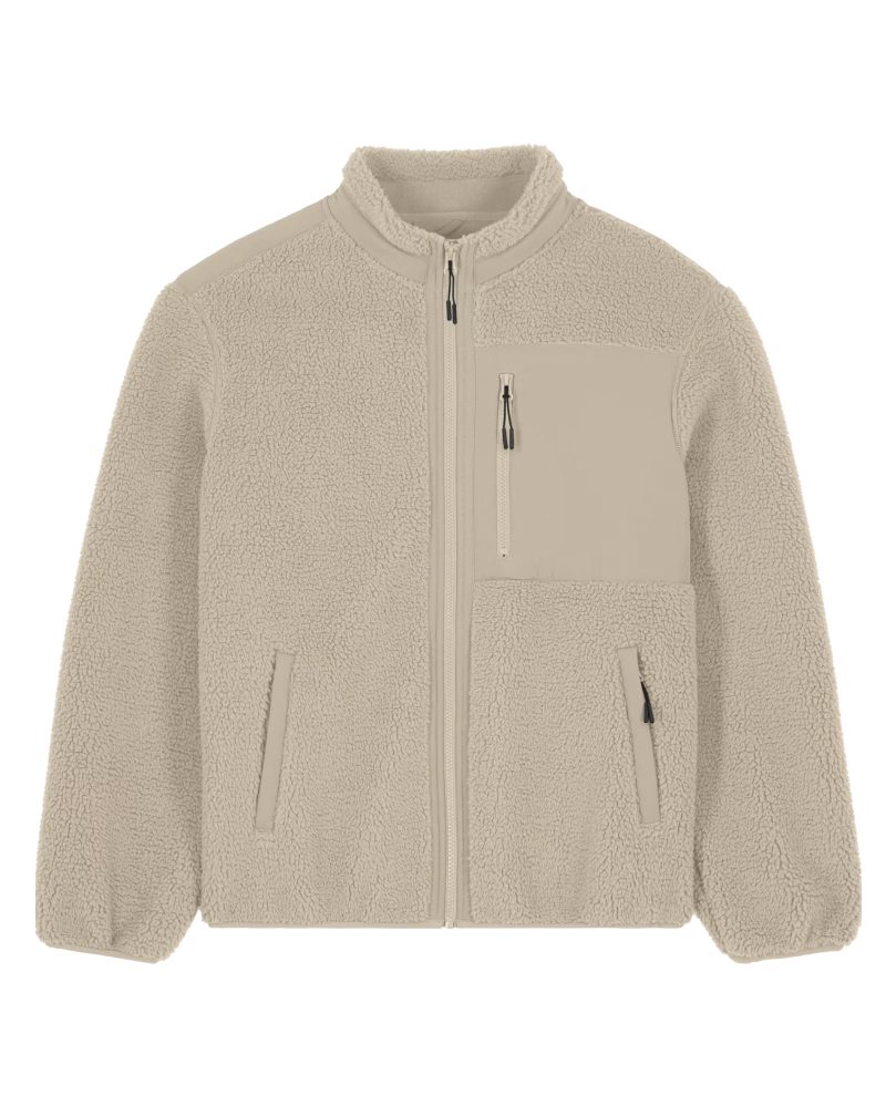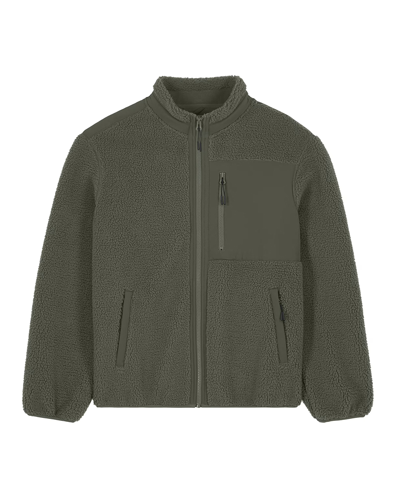 Unisex sherpa jakna s sproščenim krojem (Relaxed Fit) in težo 450 GSM poskrbi za toploto in udobje v hladnejših dneh. Izdelana je iz 100% recikliranega poliestra, z notranjo polarno podlogo in anti-piling obdelavo za večjo obstojnost. Detajli, ki štejejo: všit rokav, elastični zaključki iz recikliranega materiala, kontrastni softshell detajli na žepih, ramenih in ovratniku ter skriti žepi z zadrgo za praktičnost. Plastična Vislon zadrga z metalnim potegom in notranji skriti žep z zadrgo omogočata tudi enostavno dekoracijo. Na voljo v velikostih: XXS–3XL ✔ Izdelana iz recikliranih materialov ✔ OEKO-TEX® Standard 100 certifikat ✔ PETA-Approved Vegan