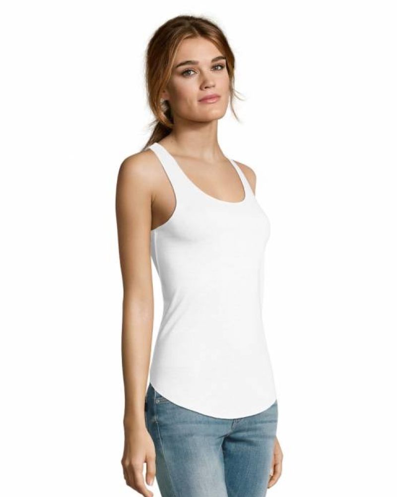 Lahka ženska majica brez rokavov iz poliestra, z nevtranlo velikostno etiketo. Pralno na 40°c. Ni primerno za sušenje v sušilnem stroju.