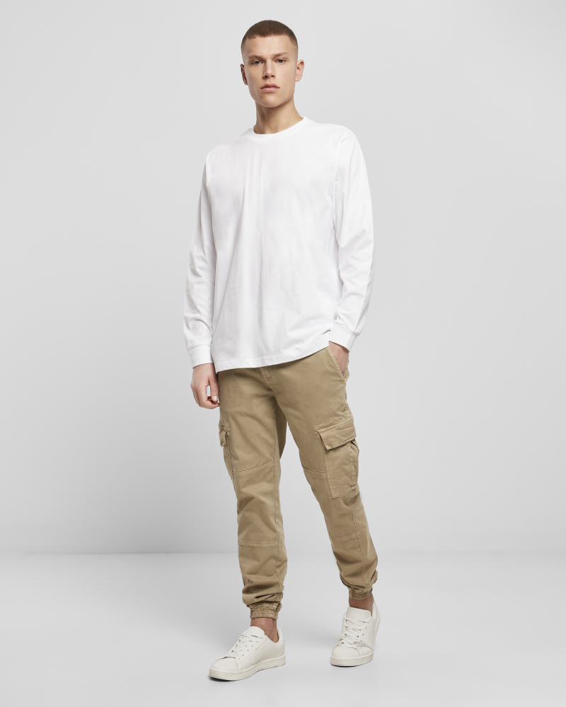 Majica z dolgimi rokavi in rebrastimi patenti je popoln primer trendovskega uličnega sloga. Udoben kroj omogoča prijetno nošenje vsak dan, medtem ko klasični detajli, kot so okrogel izrez in široki rebrasti patenti na rokavih, poudarjajo njen športni videz. Izdelana je iz 100 % bombaža (Single Jersey, 200 g/m²), kar zagotavlja mehkobo in zračnost