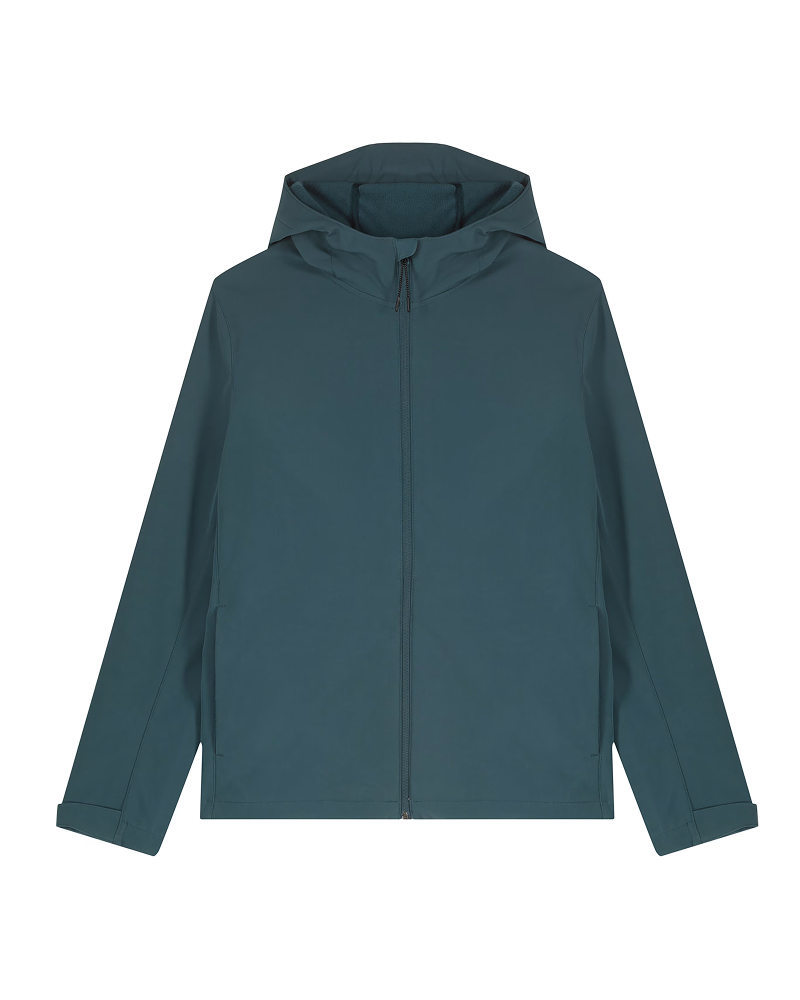 Moška softshell jakna s srednje prilegajočim krojem (Medium Fit) združuje funkcionalnost, udobje in moden videz. Izdelana je iz recikliranega 3-slojnega materiala z TPU membrano in notranjo flis podlogo za toploto in zaščito. Jakna je vodoodbojna do 10.000 mm, zračna do 3000 g/m²/24h in vetrno odporna – popolna za vse vremenske razmere. Funkcionalni detajli: visok ovratnik, panelirana kapuca z nastavljivim spodnjim robom, reverzna najlonska zadrga, stranski žepi z reflektivnimi potegalkami in nastavljive manšete na ježka. Stranski paneli in raztegljiv material poskrbijo za boljše prileganje in gibljivost, notranji šivi pa so zaključeni z reciklirano obrobo za čistejši izgled. Na voljo v velikostih: S–5XL. ✔ OEKO-TEX® Standard 100 certifikat ✔ PETA-Approved Vegan