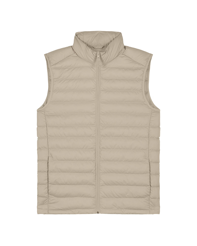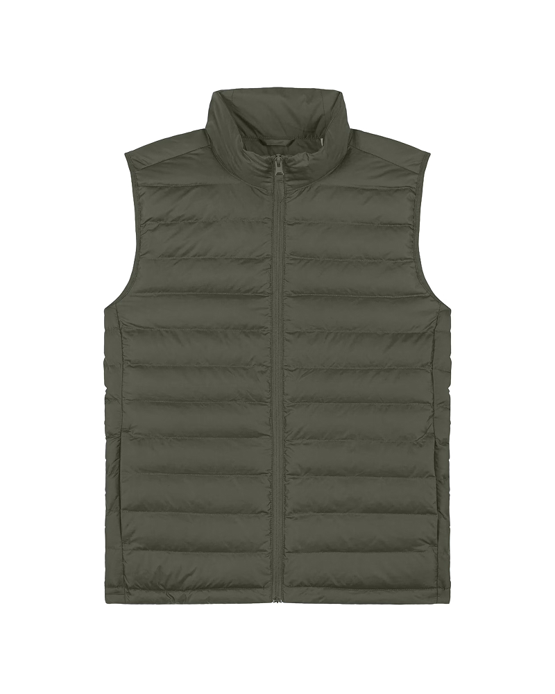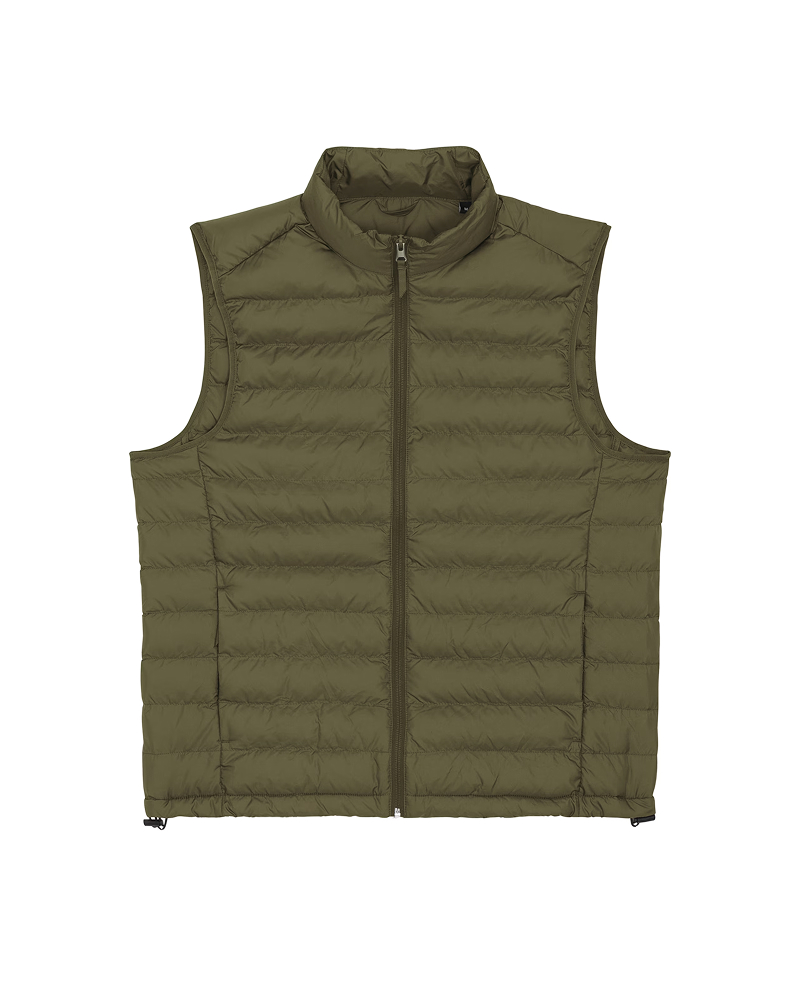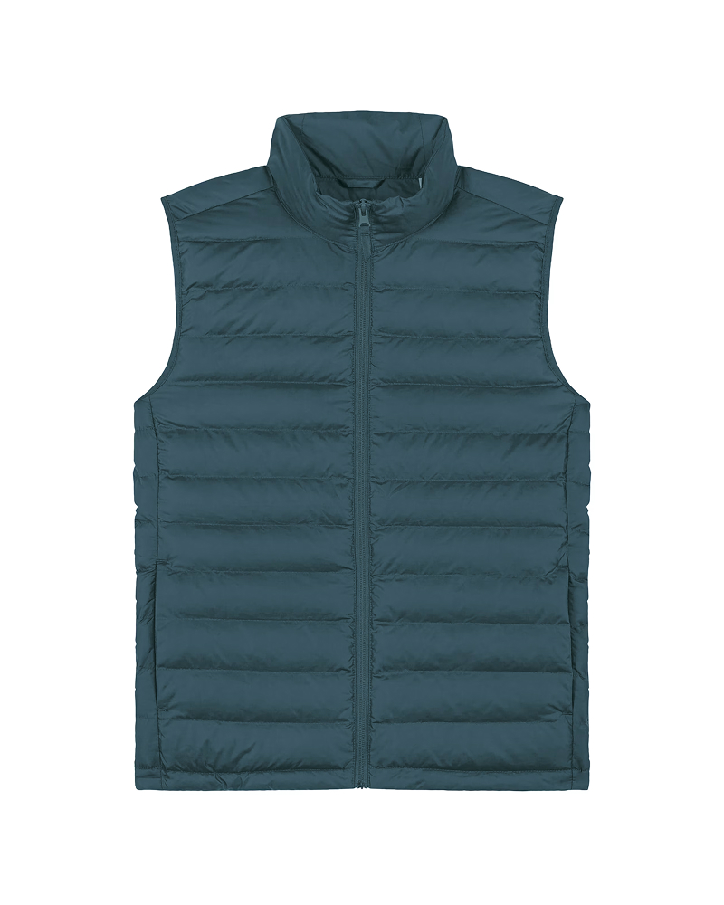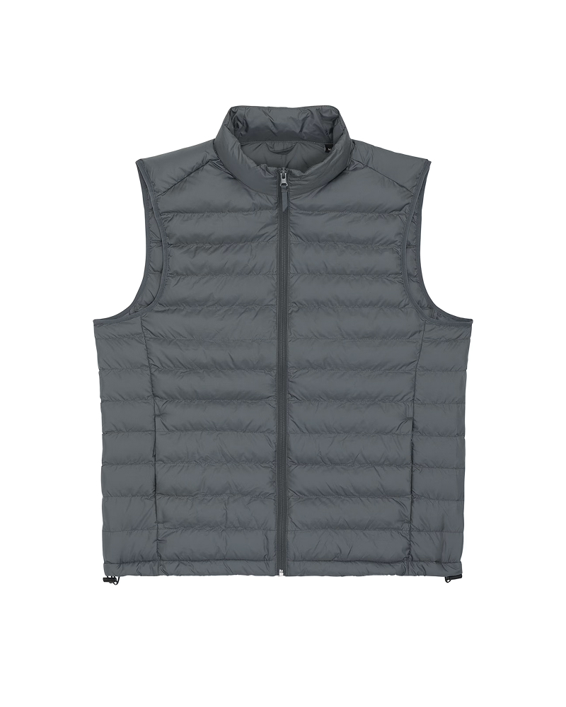 Moški brezrokavnik s prilegajočim krojem (Fitted Fit) in težo 75 GSM je odlična plast za prehodna obdobja. Lupina iz 100 % recikliranega poliestra s fluorine-free DWR obdelavo zagotavlja vodoodbojnost in vzdržljivost, notranje reciklirano polnilo pa poskrbi za toploto in udobje. Ključni detajli: visok ovratnik, reverzna najlonska zadrga, stranski žepi z grograin potegalkami, elastični zaključki na rokavnih izrezih, stranski paneli za boljše prileganje in nastavljiv spodnji rob z elastično vrvico in plastičnim stoperjem. Notranji šivi so lepo zaključeni z obrobo za dodatno obstojnost. Na voljo v velikostih: S–5XL ✔ OEKO-TEX® Standard 100 certifikat ✔ PETA-Approved Vegan