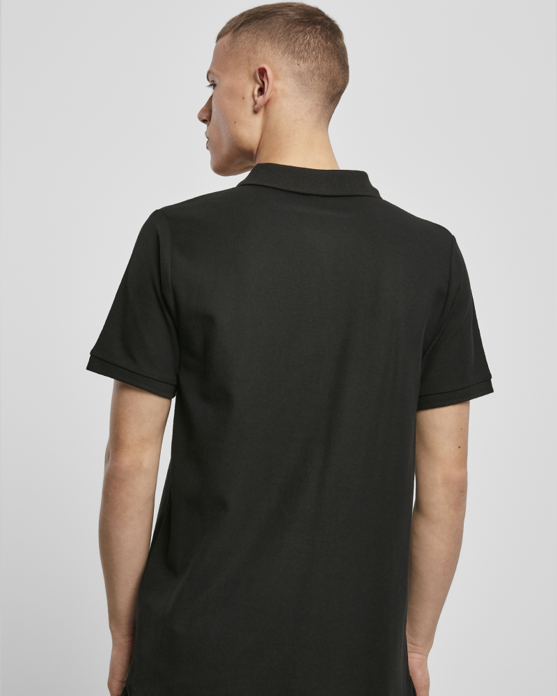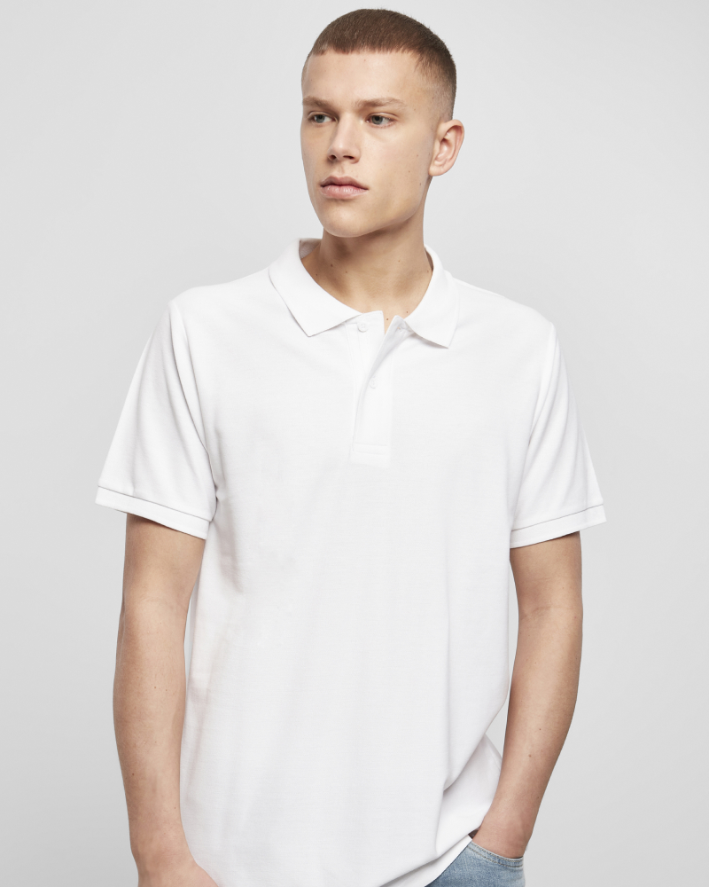 Oprijeti polo iz piqué tkanine združuje eleganco in udobje. Kroj odlikujejo prišiti rokavi, rebrast ovratnik in trije diskretni gumbi v isti barvi. Dodatni detajli vključujejo trak v ribji kostni vezavi na ovratniku, znotraj stranskih razporkov na robu ter na notranji strani zadrge pri gumbih. Dvojni šivi na robu zagotavljajo dodatno vzdržljivost. Izdelan je iz 90 % bombaža in 10 % viskoze, kar omogoča udobno nošenje. Piqué tkanina s težo 220 g/m² mu daje klasičen, a sodoben videz.