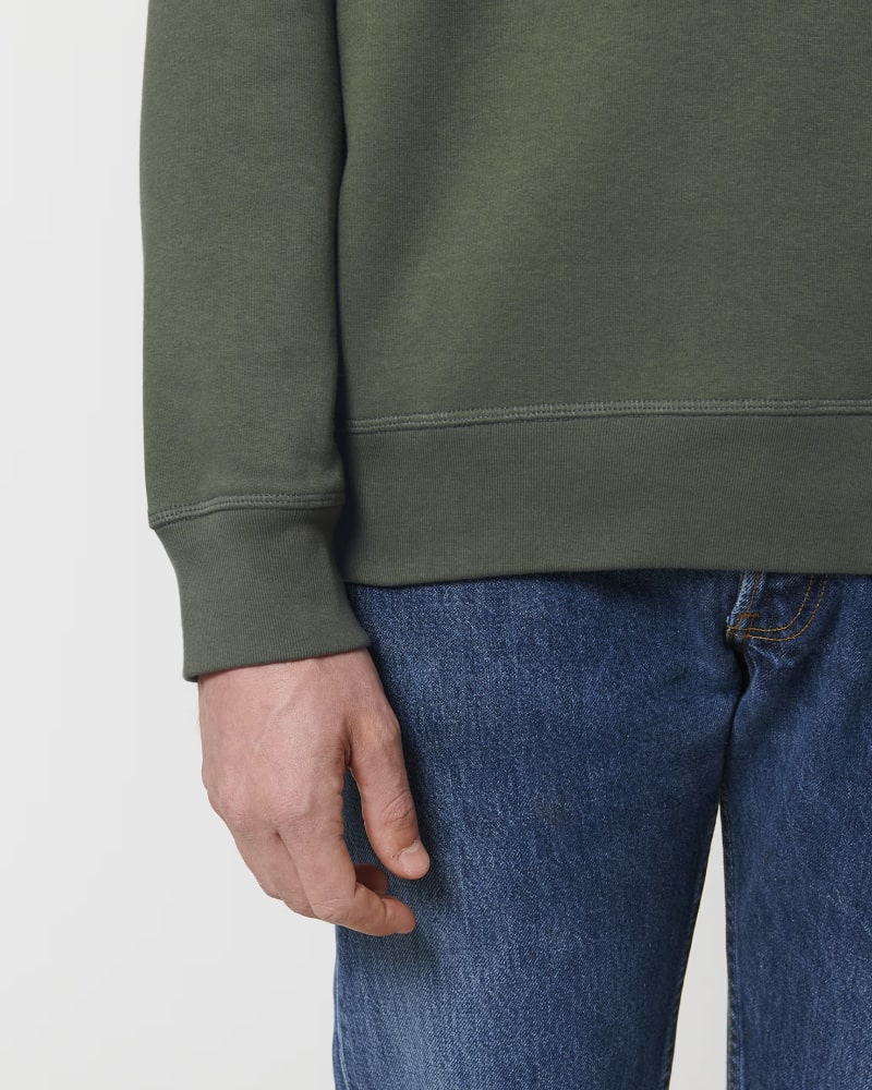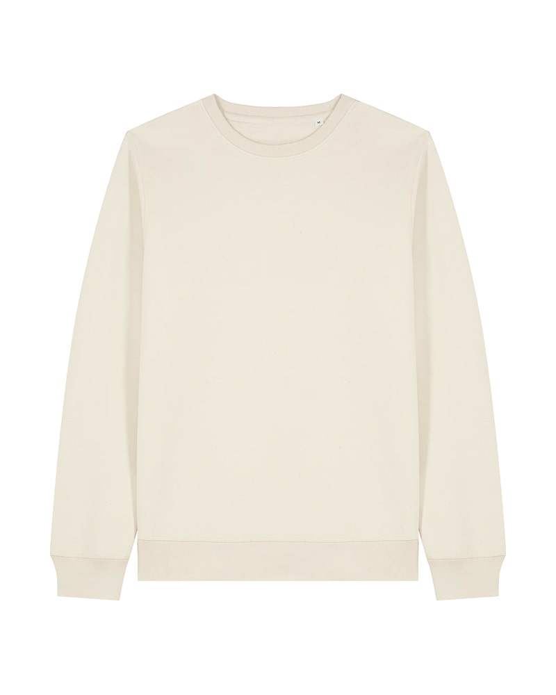 Unisex crewneck pulover s srednje prilegajočim krojem, izdelan iz 280 GSM brušene tkanine za optimalno udobje, toplino in vsestransko nošenje. Sestavljen je iz 85 % organskega česanega bombaža ring-spun in 15 % recikliranega poliestra, tkanina je oprana in rahlo brušena za mehkobo ter dolgotrajno obstojnost. Model vključuje všite rokave, 1x1 rebraste obrobe na ovratniku, rokavih in spodnjem robu ter notranji trak iz ribje kosti na zadnjem delu vratu. Vsi šivi so zaključeni z ravnim prešivom za trpežnost in čist videz, na hrbtni strani vratu pa je všit polkrožen kos iz iste tkanine za dodatno stabilnost. Na voljo v velikostih XXS–5XL. ✔ OEKO-TEX® Standard 100 certifikat ✔ PETA-Approved Vegan