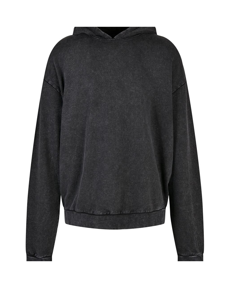 "Washedout-oversized" Pulover s kapuco brez vrvic za prilagajanje, širokimi patenti na rokavih in pasu ter nevtralno velikostno etiketo. Pralno na 30°c. Ni primerno za sušenje v sušilnem stroju.