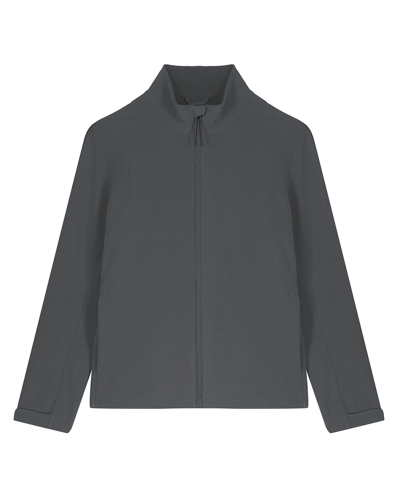 Moška softshell jakna s srednje prilegajočim krojem (Medium Fit) združuje funkcionalnost, toploto in odpornost na vremenske razmere. Izdelana je iz recikliranega 3-slojnega materiala z TPU membrano in notranjo flis podlogo, ki zagotavlja udobje in zaščito. Jakna je vodoodbojna do 10.000 mm, zračna do 3000 g/m²/24h in vetrno odporna – idealna za mestne in outdoor aktivnosti. Funkcionalni detajli: visok ovratnik, reverzna najlonska zadrga, stranski žepi z reflektivnimi potegalkami ter spodnji rob z nastavljivim elastičnim trakom in plastičnim stoperjem. Stranski paneli z raztegljivim materialom izboljšajo prileganje, notranji šivi pa so zaključeni z reciklirano obrobo. Nastavljive manšete na ježka poskrbijo za dodatno zaščito pred vetrom. Na voljo v velikostih: S–5XL. ✔ OEKO-TEX® Standard 100 certifikat ✔ PETA-Approved Vegan