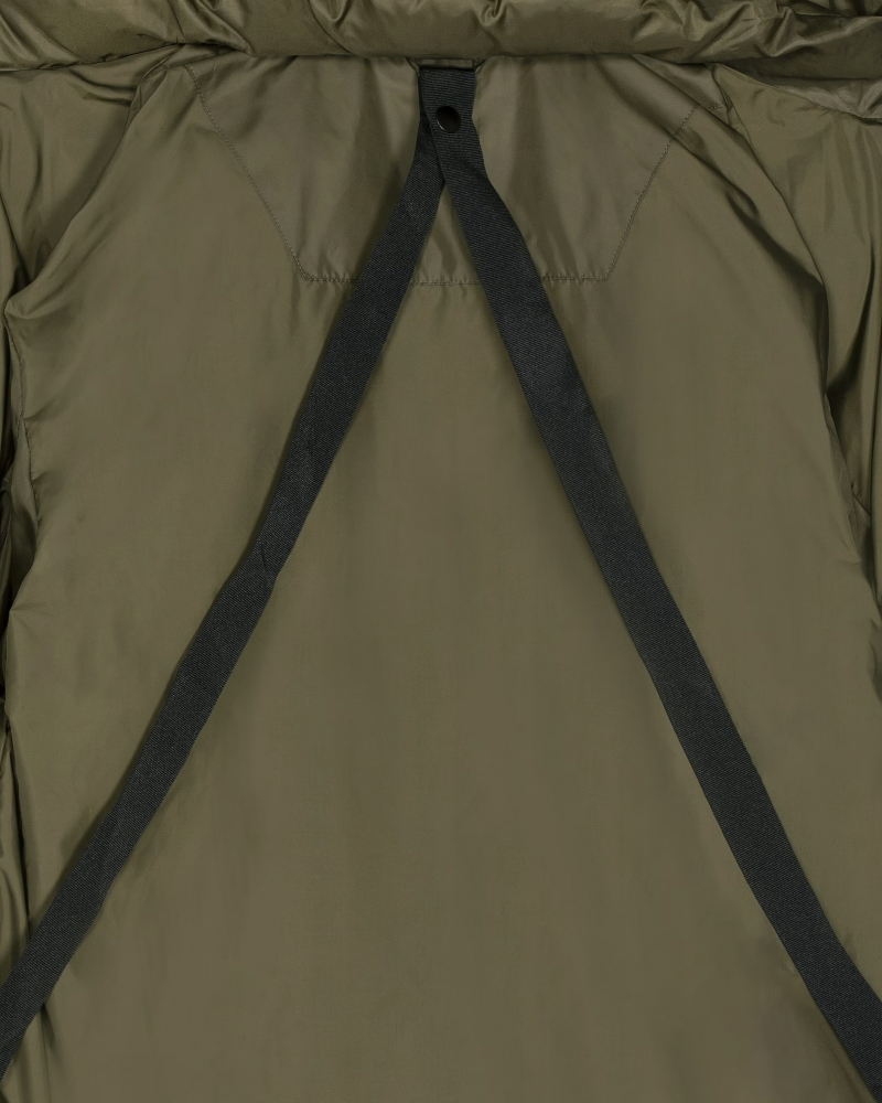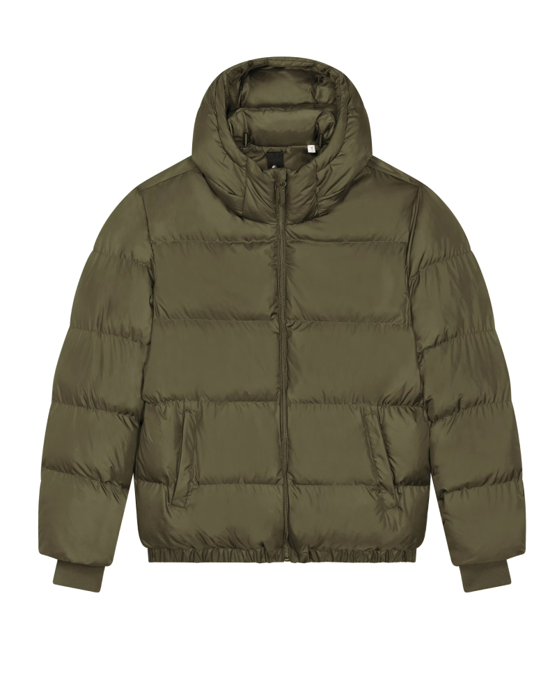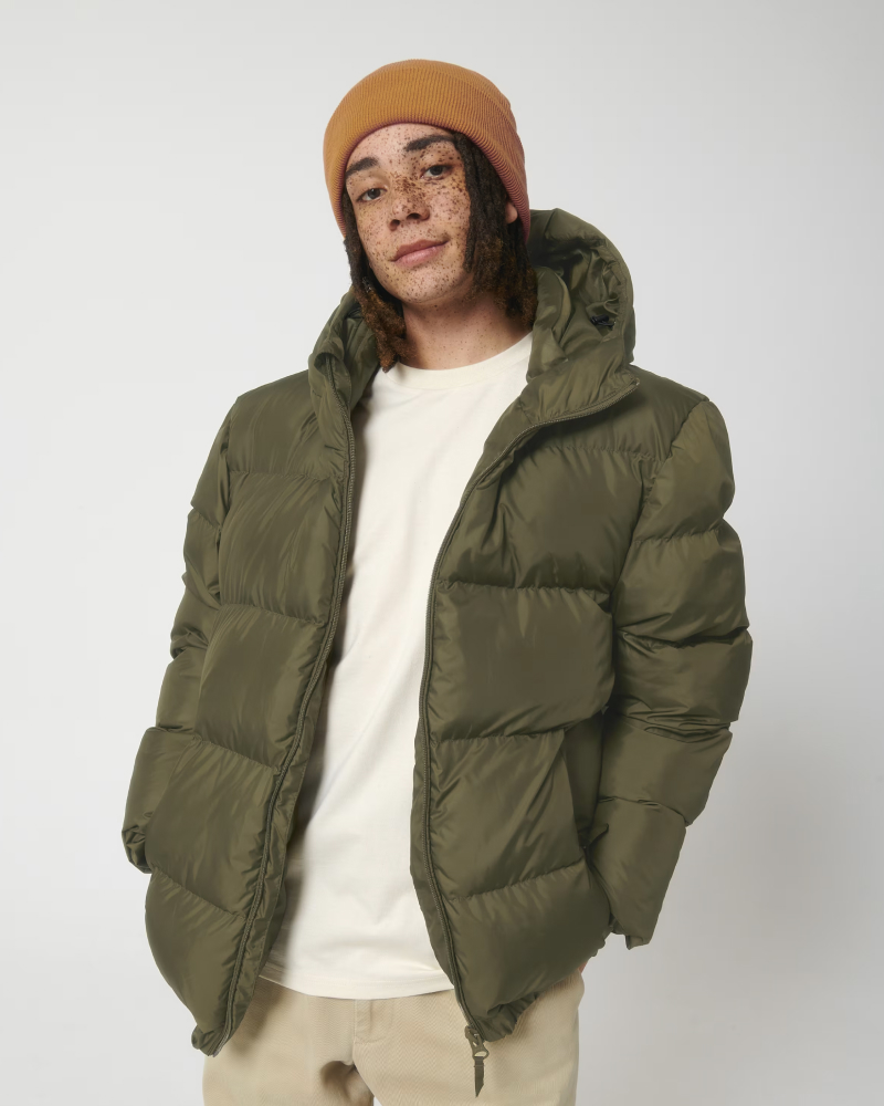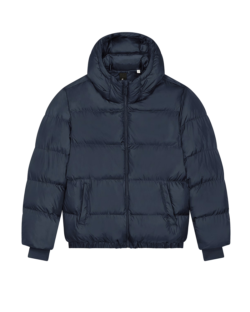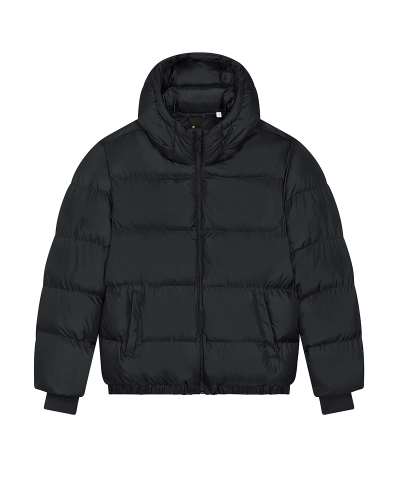 Unisex oversized puffer jakna z 75 GSM težo prinaša maksimalno udobje in trendovski videz. Izdelana je iz 100% recikliranega poliestra z fluorine-free vodoodbojno obdelavo (DWR), polnjenega in podloženega prav tako z recikliranimi materiali. Funkcionalni detajli: všit rokav, rebrasti zaključki na manšetah, elastičen spodnji rob in podložena kapuca z nastavljivimi stoperji. Zadrga z zaščito za brado, stranski žepi z grosgrain potegalkami ter notranji prsni žep z zadrgo poskrbijo za praktičnost. Notranji grosgrain trakovi omogočajo nošenje jakne brez rok. Na voljo v velikostih: XXS–3XL ✔ OEKO-TEX® Standard 100 certifikat ✔ PETA-Approved Vegan