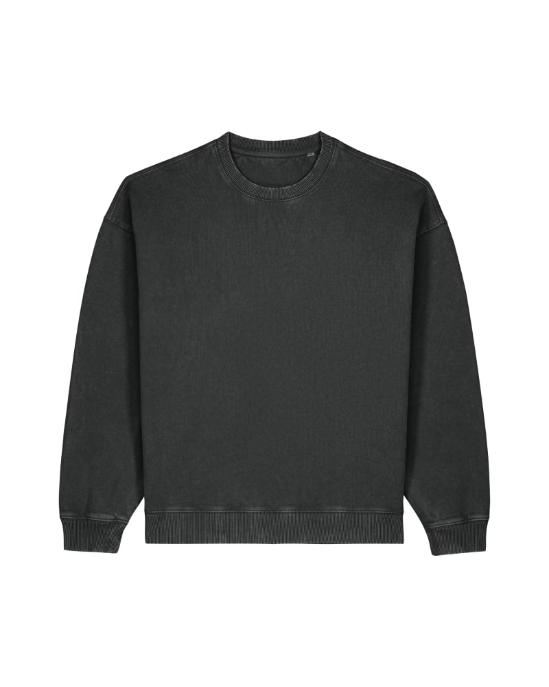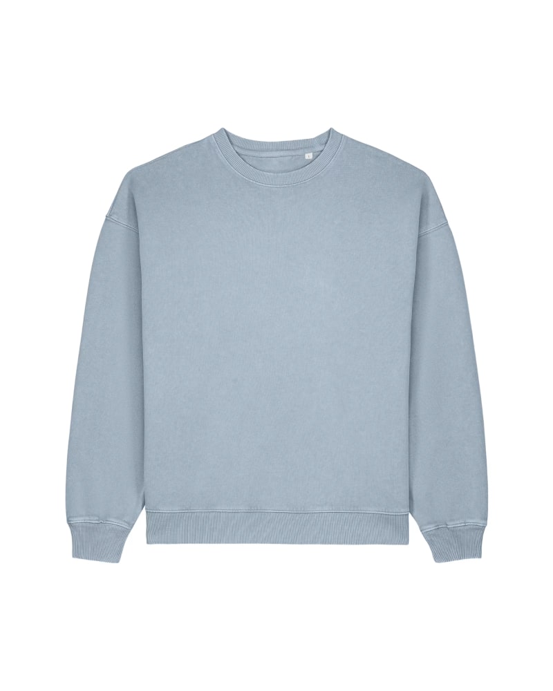 Izjemno udoben in vizualno edinstven pulover, ki združuje robustnost, naravne materiale in izpran videz z značajem. Izdelan je iz 100 % organskega, obročasto predenega bombaža, brušena notranjost pa poskrbi za mehkobo in toplotno udobje. Pulover ima vsit rokav, rebraste zaključke na ovratniku, rokavih in spodnjem robu ter dvojne šive na vseh stikih, kar zagotavlja obstojnost in lepo obliko tudi po pranju. Notranji trak v ribji kosti in polmesečni všitek na zatilju dopolnjujeta detajle, ki dajejo puloverju dovršen izgled. Oblačilo je barvano po krojenju, kar pomeni, da ima vsak kos rahlo različen odtenek in naravno spran videz, ki se sčasoma še okrepi. Barva lahko prehaja na druge materiale, zato je priporočeno ločeno pranje in upoštevanje navodil na etiketi. Z masivno gramatura 380 g/m² je ta model odlična izbira za hladnejše dni.