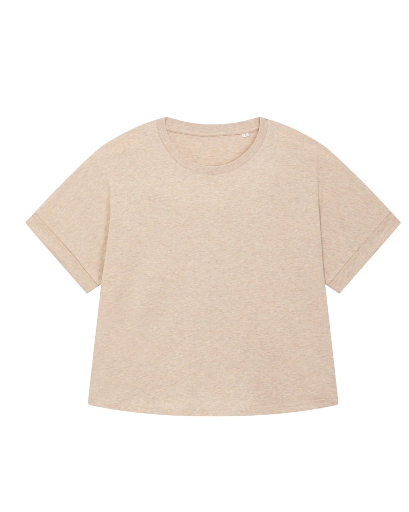 Ženska majica z ohlapnim krojem (Oversized) in 155 GSM težo, izdelana iz 100% organskega česanega bombaža. Tkanina je predhodno oprana, kar zagotavlja mehkobo in udobje že ob prvem nošenju. Majica ima dolman rokav z zavihanimi manšetami, ki so utrjene s prešivi, ter rebrast ovratnik z notranjim trakom iz enake tkanine. Spodnji rob je zaobljen in zaključen s širokim dvojnim šivom, pri čemer je zadnji del nekoliko daljši od sprednjega – za moden in sproščen videz. Na voljo v velikostih: XS–XXL ✔ OEKO-TEX® Standard 100 certifikat ✔ PETA-Approved Vegan