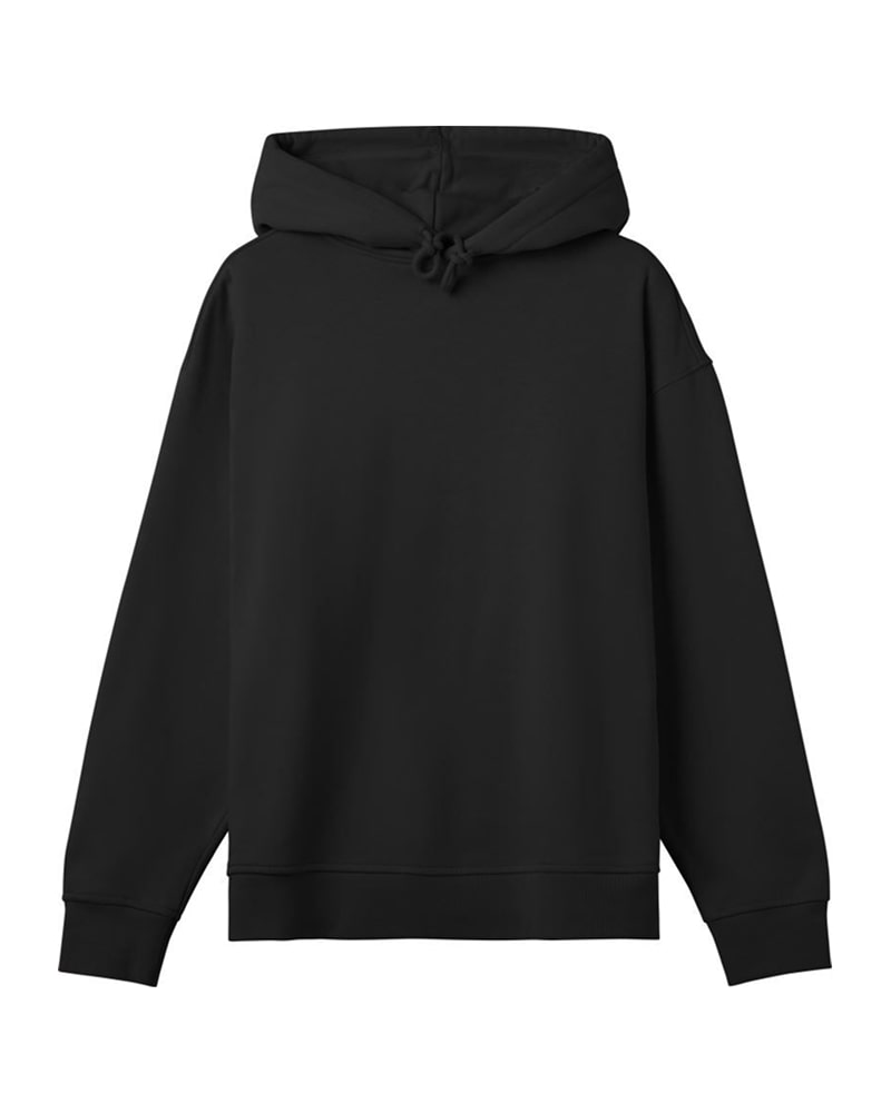 Pulover z Oversize krojem in težo 370 g/m² združuje 87 % certificiranega organskega combed ringspun bombaža ter 13 % recikliranega poliestra za gost, mehak in trajnosten material. Opremljen je z dvoslojno kapuco z vrvico, spuščenimi rameni in halfmoon vložkom v izrezu za vrat z všitim trakom za dodatno stabilnost. Brušena notranjost poskrbi za prijeten občutek, dvojni šivi na manšetah in spodnjem robu pa zagotavljajo obliko in dolgotrajno obstojnost.